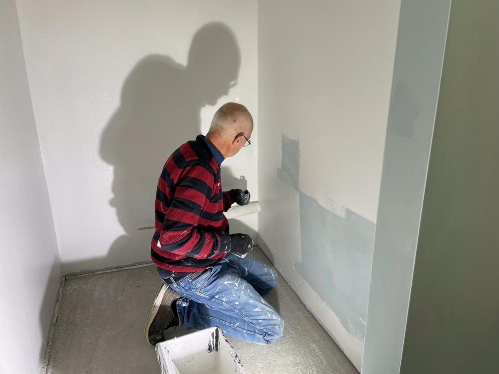 Det går stærkt i den nye kirke på Sæbygaardvej i Sæby. Storskærm, toiletter, lys, loft og gulv arbejdes der på.