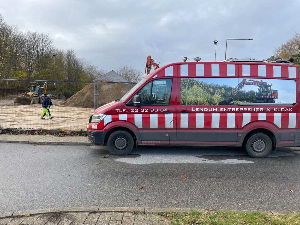 Vi er i gang med klargøring af grunden, efter de første spadestik blev taget har større maskiner taget over.