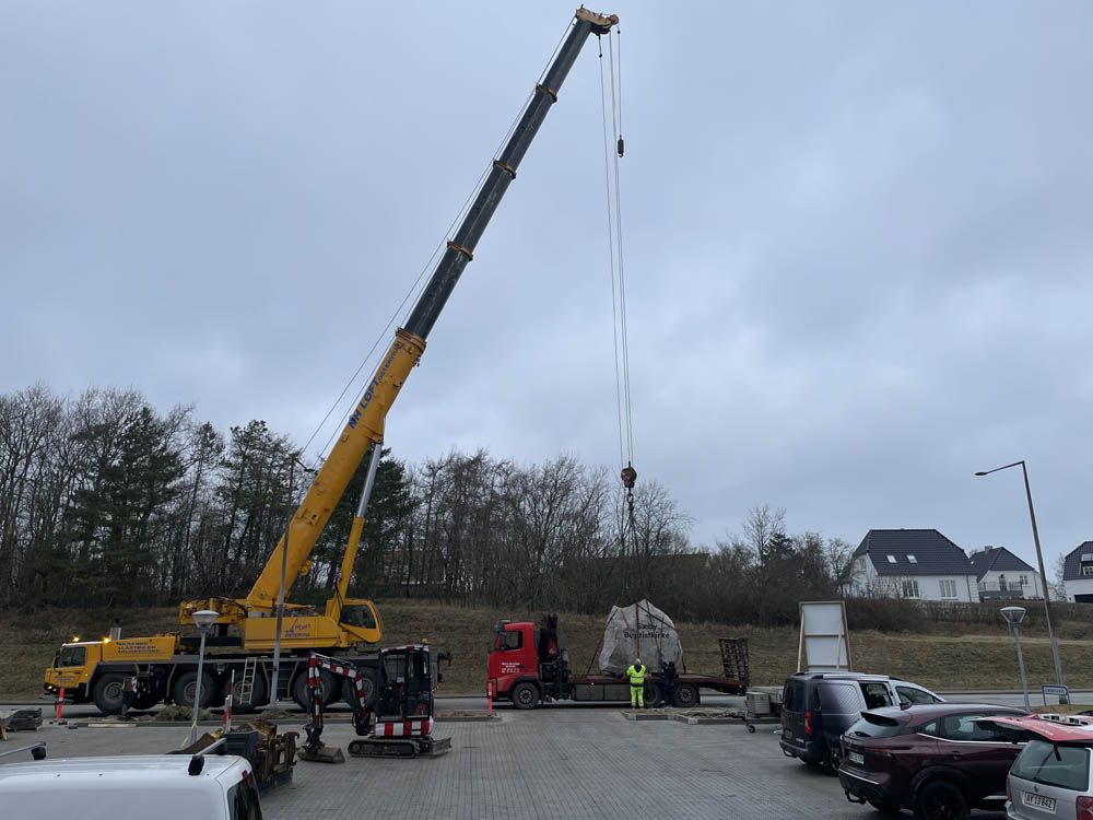 Parkeringsplads og sten færdiggøres og placeres