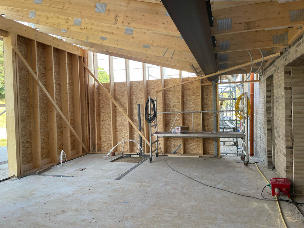 Byggeriet tager form. Siden vi startede byggeriet først på året er der sket meget på Sæbygaardvej i Sæby, hvor vi bygger vores nye kirke – Sæby Baptistkirke.