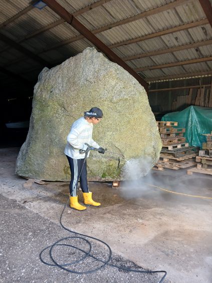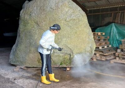 Niels Ørvad, havde en kæmpe sten på sin mark, og her i Sæby er der en nyudlært stenhugger, som skal hugge “Sæby Baptistkirke”, og derefter bliver den anbragt nede ved kirken, på Sæbygaardvej.
